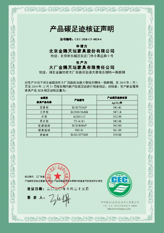 上一篇:北京金隅天壇家具股份有限公司-CEC-2020-CF-0020-2-鋼木類家具