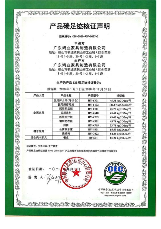 下一篇:廣東省鴻業家具制造有限公司碳足跡核證聲明-CEC-2021-PCF-0037-1-人造板類實木類 家具