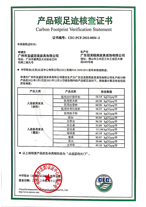 下一篇:廣東冠美頤高家具裝飾有限公司-CEC-PCF-2022-0054-1-人造板類家具(涂飾)