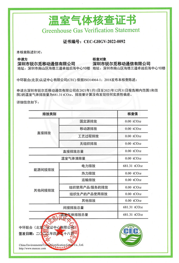上一篇:深圳市銳爾覓移動通信有限公司-CEC-GHGV-2022-0092-溫室氣體核查證書(英文)